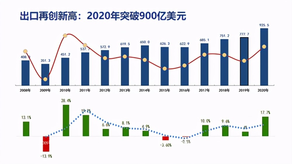 1、2020年上半年出口持续复苏,下半年出口大幅增长。