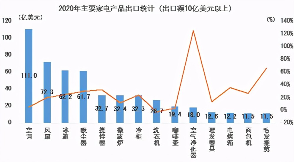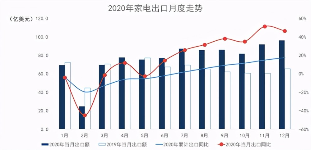 一、2020年家电出口情况:规模逆势增长。