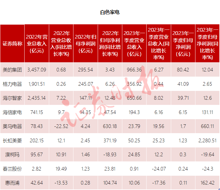 值得一提的是,白色家电中,海信家电、奥马电器、长虹美菱、惠而浦等营收规模虽然不及美的集团等头部企业,但业绩增速较快,今年一季度均实现翻倍增长。