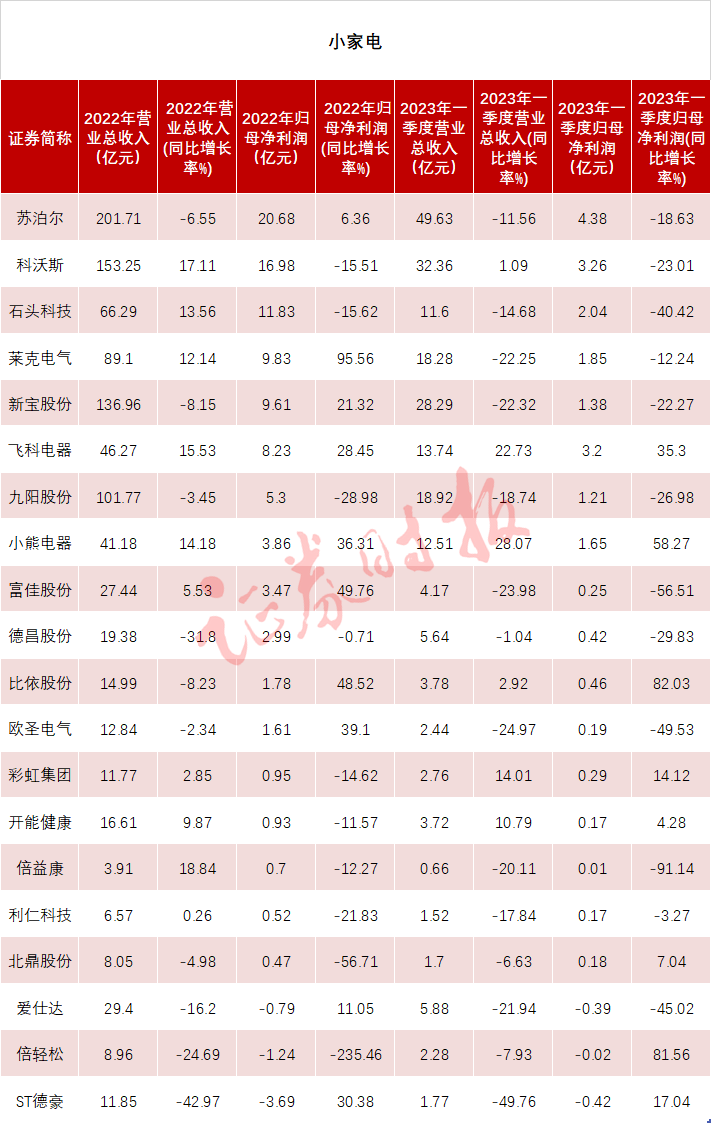 厨卫家电今年一季度普遍增长乏力,小家电在去年一季度基数较高的情况下,不少公司一季度业绩下滑。